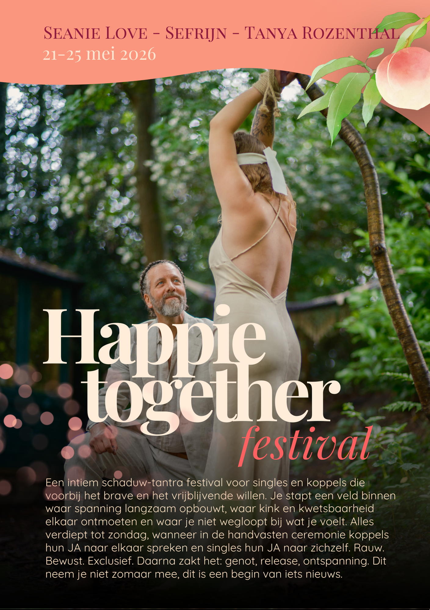 Seanie Love met zijn ervaring in shadow tantra, conscious kink en ritueel werk met een combinatie van speelsheid en haarscherpe aanwezigheid. Hij nodigt koppels uit om verlangen, waarheid en kracht toe te laten altijd met consent en humor;